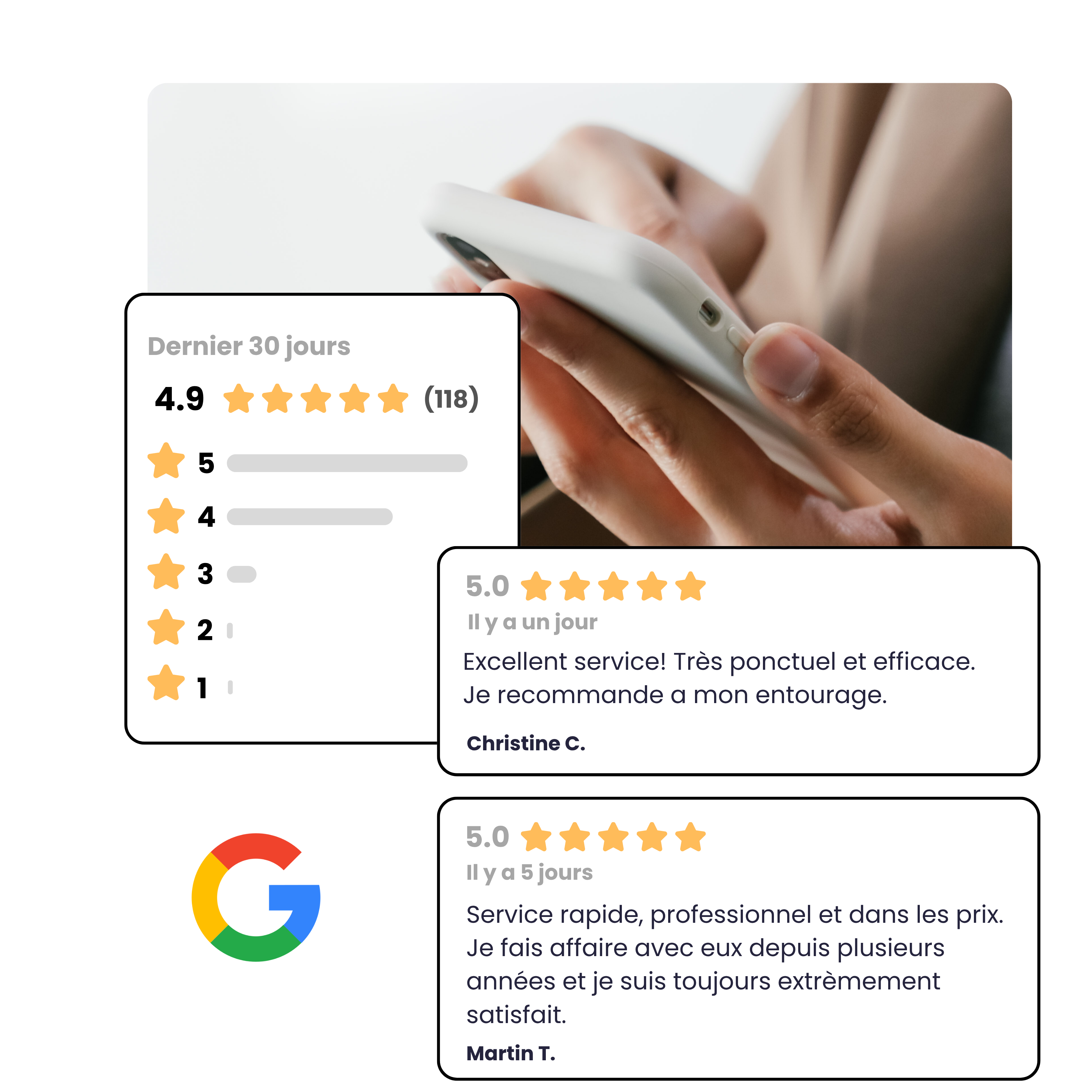 Nos outils automatisés d'avis Google vous permettent de vous démarquer de la concurrence.